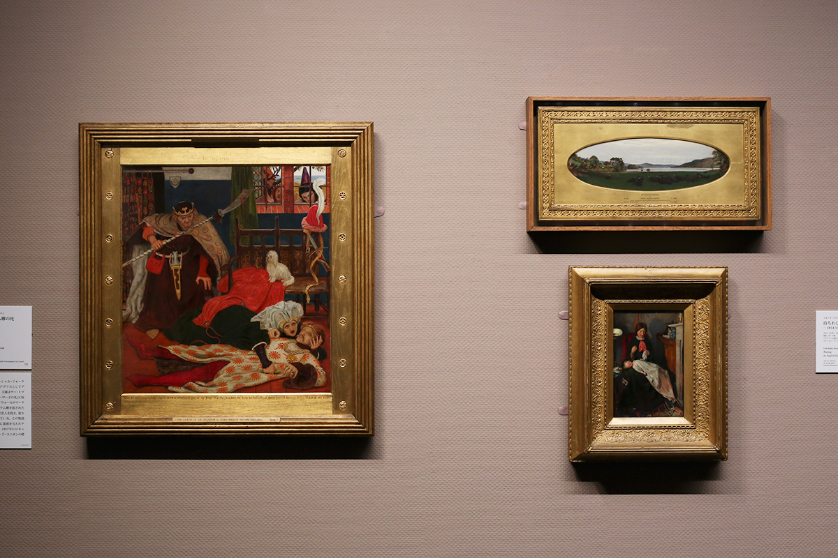 (左から時計回りで)フォード・マドクス・ブラウン《トリストラム卿の死》1864年 バーミンガム美術館 / フォード・マドクス・ブラウン《ウィンダミア》1848-55年 リヴァプール国立美術館、レディ・リーヴァー・アート・ギャラリー / フォード・マドクス・ブラウン《待ちわびて ─ 1854-55年イギリスの冬の炉端》1851-52年/1854-55年 リヴァプール国立美術館、ウォーカー・アート・ギャラリー