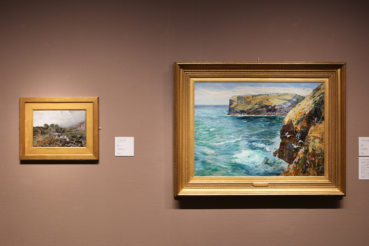 (左から)アルフレッド・ウィリアム・ハント《コーネル・ロス ─ 春》1857年 / ジョン・ウィリアム・インチボルト《アーサー王の島》1862年