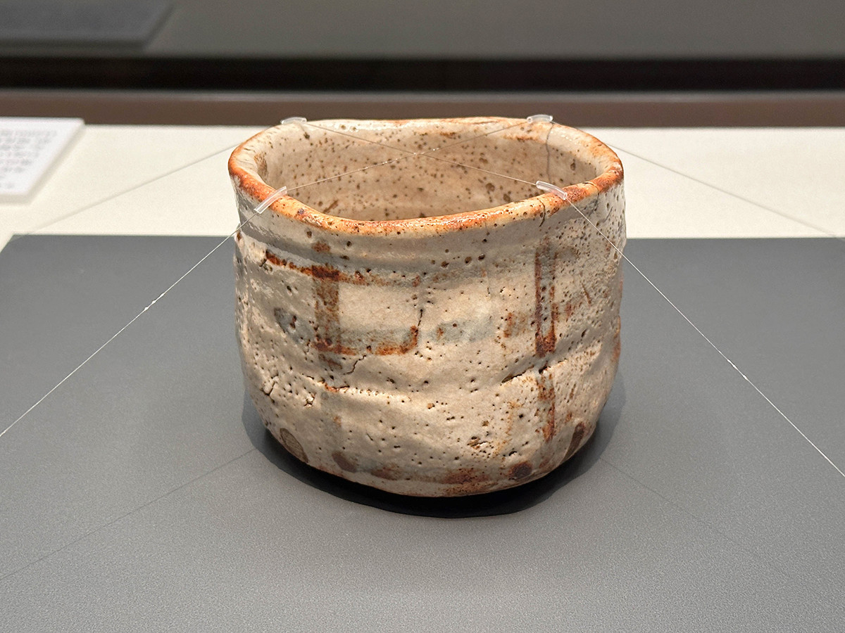 《大井戸茶碗 銘 須弥 別銘 十文字》は織部が所持したとされる茶碗。形が大きく歪んでいたので、十文字に割って小さくしたという、織部らしいエピソードとともに伝わっています。