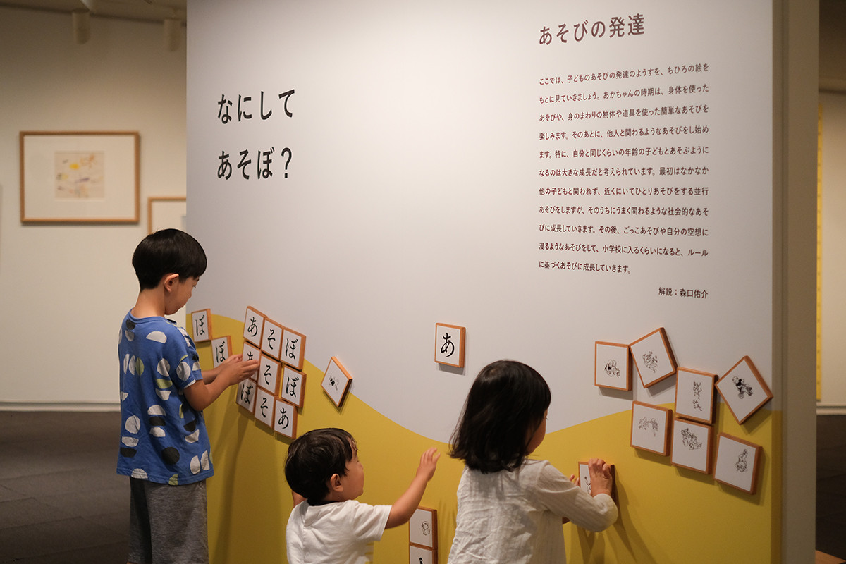 現在開催されている「いわさきちひろ ぼつご50ねん こどものみなさまへ あ・そ・ぼ」展は、その名の通りあそびをテーマにした展覧会です。展覧会のディレクターは近森基+小原藍(plaplax)。覗いたり、触れたり、くぐったり、子どもも大人も見るだけで参加したくなる、今までにないちひろの展覧会です。さっそくわが家の3人の子どもたちと一緒に、会場に向かいました。