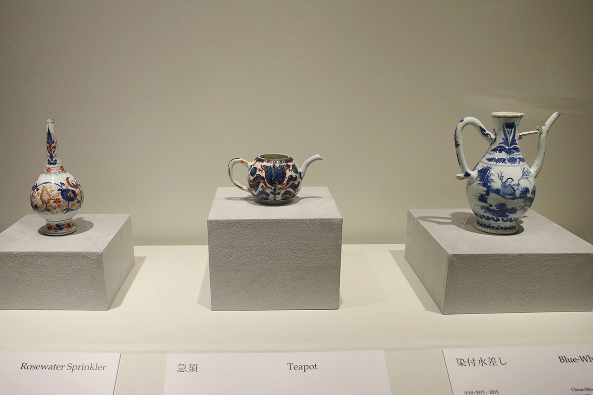 (左から)《バラ水入れ》中国・清代 1700-25年 / 《急須》中国・清代 1700-25年 / 《染付水差し》中国・明代-清代 17世紀中期