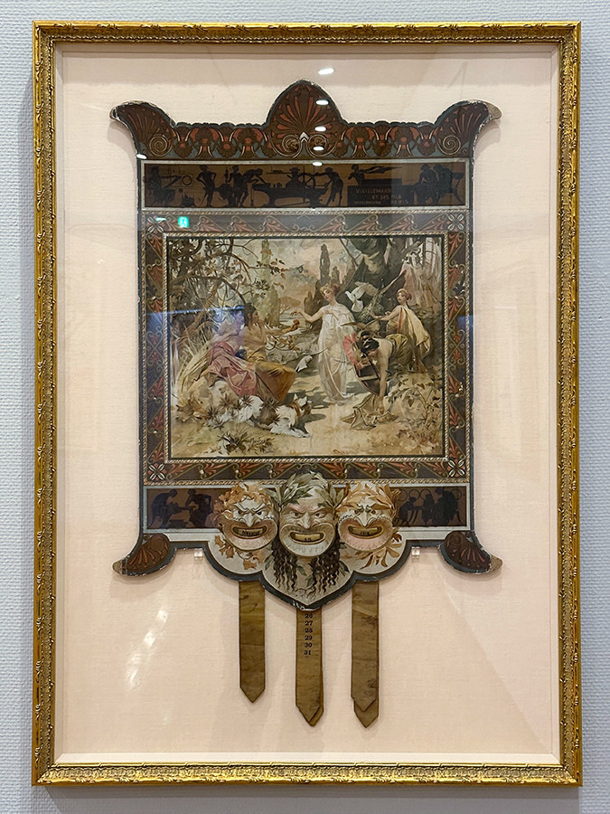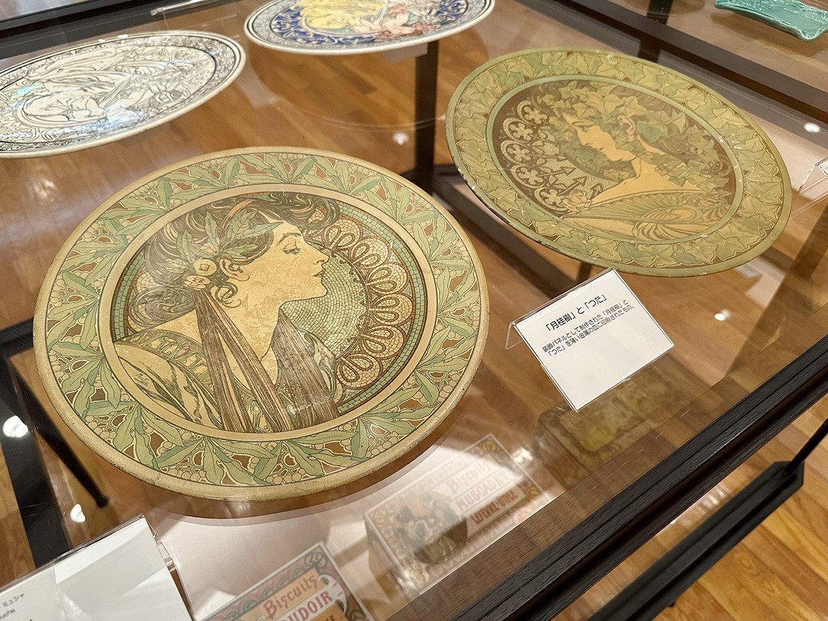 ミュシャはポスターや装飾パネルなどにとどまらず、商品パッケージ、ポストカード、当時流行した絵入りのメニュー、カレンダー、室内装飾など、さまざまなものに作品を提供しています。