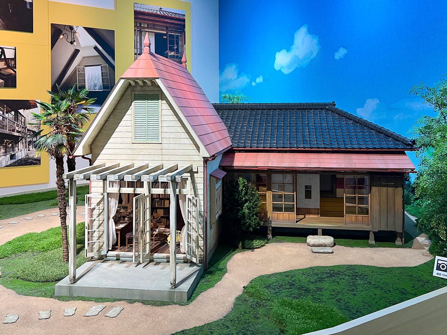 万博閉幕後も保管され、現在もジブリパークの「どんどこ森」で公開されているサツキとメイの家。第3章「アニメーションの世界を本物に」では、宮崎吾朗が本物にこだわったことが分かる、模型や家の制作フロー、家の内観写真を紹介しています。