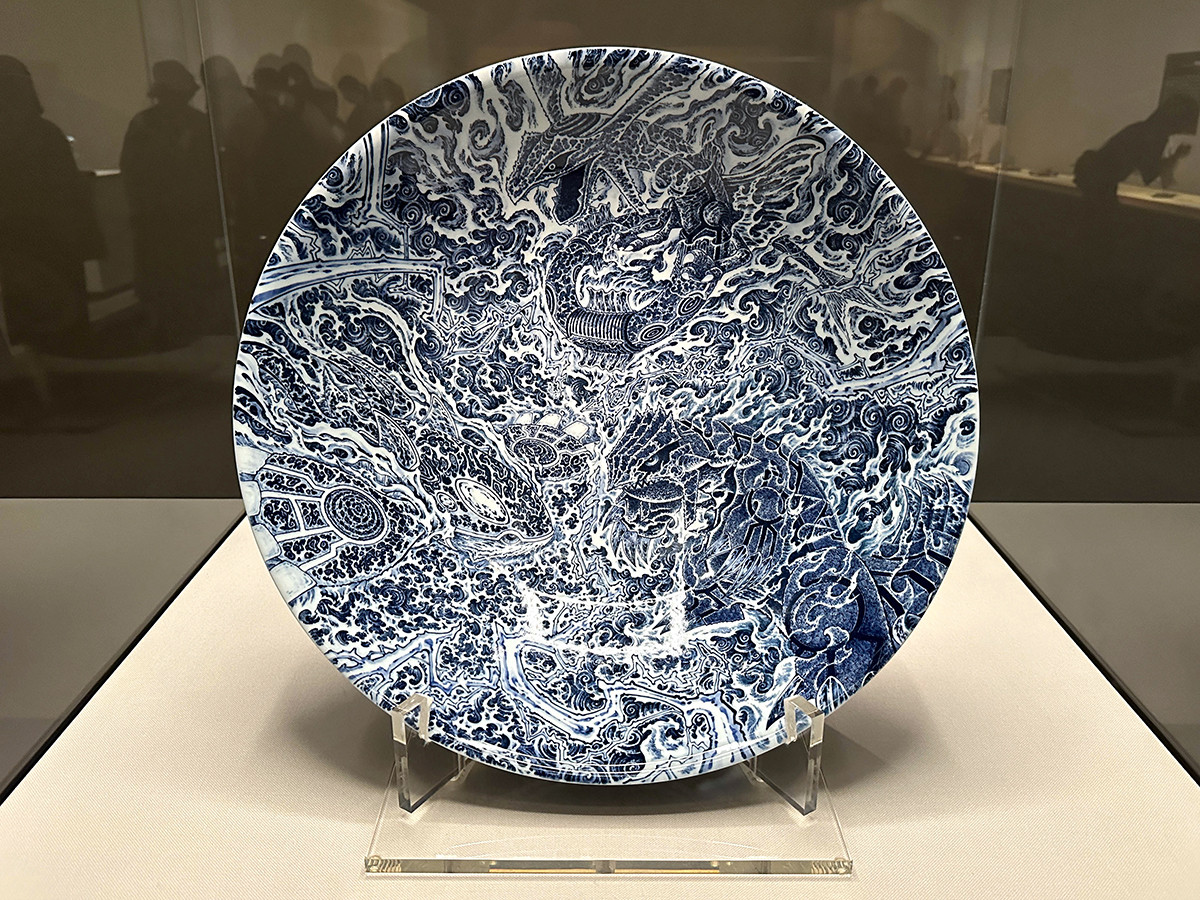 まずは陶芸、葉山有樹の作品から。葉山はこれまでの展覧会でも、自らの「森羅万象」シリーズを「ポケモン×工芸展」の作品として落とし込んだ《森羅万象ポケモン壷》などを展示していましたが、今回は、キューブ型の新作なども登場しました。