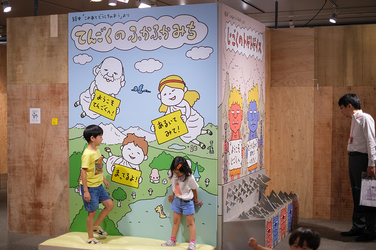 同じく『このあとどうしちゃおう』に登場する「てんごくのふかふかみち」です。地獄の苦しみを味わった後ということもあり極上の歩き心地でした。ヨシタケさんの妄想する天国と地獄を是非実際に味わってみてください。