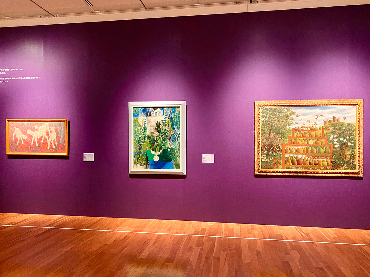 私の一押しトリオはこちらです。三人の画家の共通点は植物。植物をモチーフにしたテキスタイル・デザインを手がけたデュフィ、植物学者を志したことのある辻永、画家になる前に園芸業を営んでいたボーシャン。三者三様の魅力的な作品が並ぶ中でも特に、赤とピンクの椿の絨毯の上で遊ぶ仔山羊たちの可愛らしいこと。