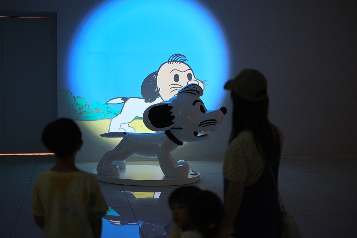 フロアが変わり「スヌーピー・ルーム」は、巨大なスヌーピーが並ぶインパクト大の展示室です。すやすや眠ったり、ものまねをしたり、スケートをしたりとその愛らしい姿に子どもたちも「わぁ!」と歓声をあげて駆け寄っていましたが、残念ながら触ることはできませんでした。