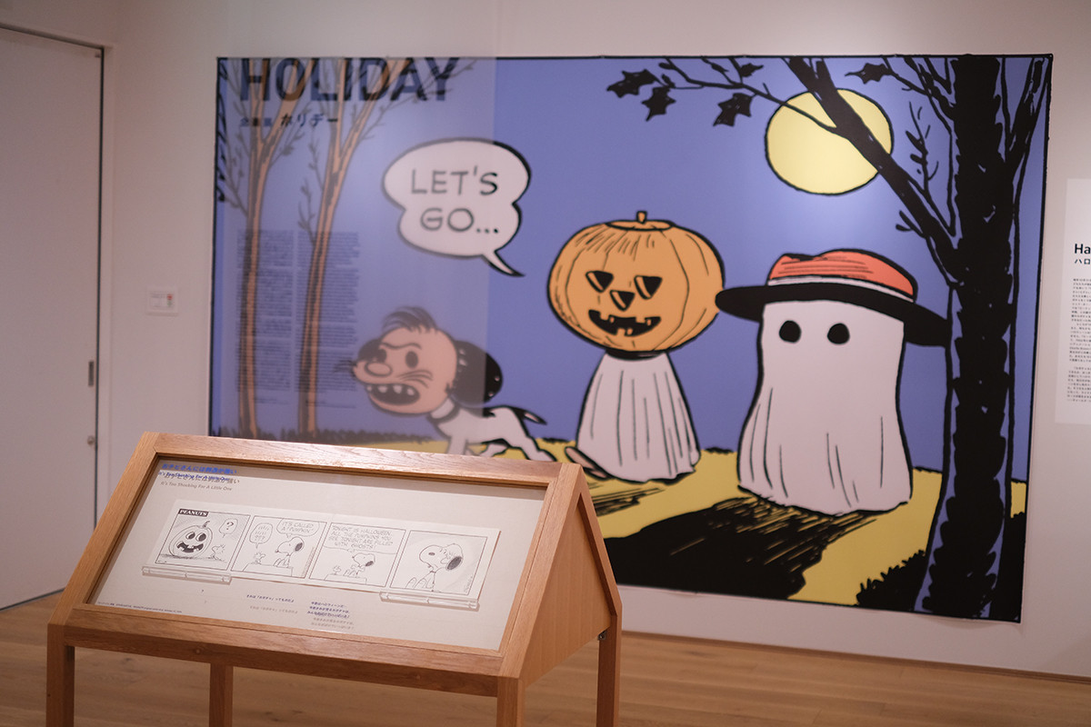 アメリカの何気ない日々を綴る「ピーナッツ」には、季節ごとにさまざまなホリデーが描かれています。今回の企画展はそんなピーナッツ・ギャングが繰り広げるアメリカならではのホリデー文化をコミックとともに紹介するものです。展示は「ハロウィーン」から始まり、「クリスマス」「ニューイヤー」「バレンタイン」「イースター」と続く、見ているだけでホリデー気分を味わえるわくわくする空間でした。