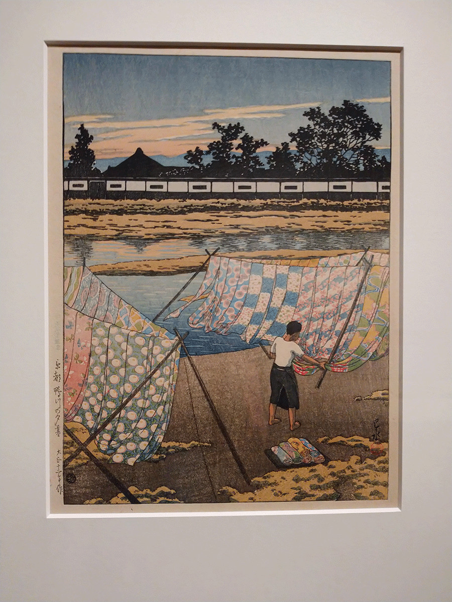 大正から昭和にかけて興隆した多色摺木版画は「新版画」と呼ばれます。川瀬巴水による版画作品は日本での旅行ブームと相まってガイドブックのような人気を集め、国内だけでなく海外でも注目されることになるのです。出品数が多いので1枚1枚を見てゆくとかなり時間がかかるのですが、各作品に味わいがあるので覚悟してスタートします。