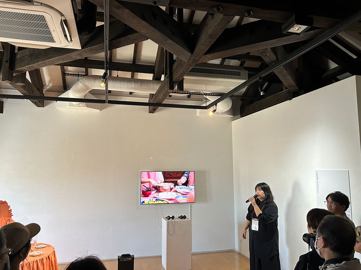 瀬戸市新世紀工芸館の交流棟の前で行われた開会式に引き続き、各展示会場でアーティストトークが行われました。作家本人から制作にまつわる話を聞ける貴重な機会とあって、会場は大勢の観客で混雑していました。