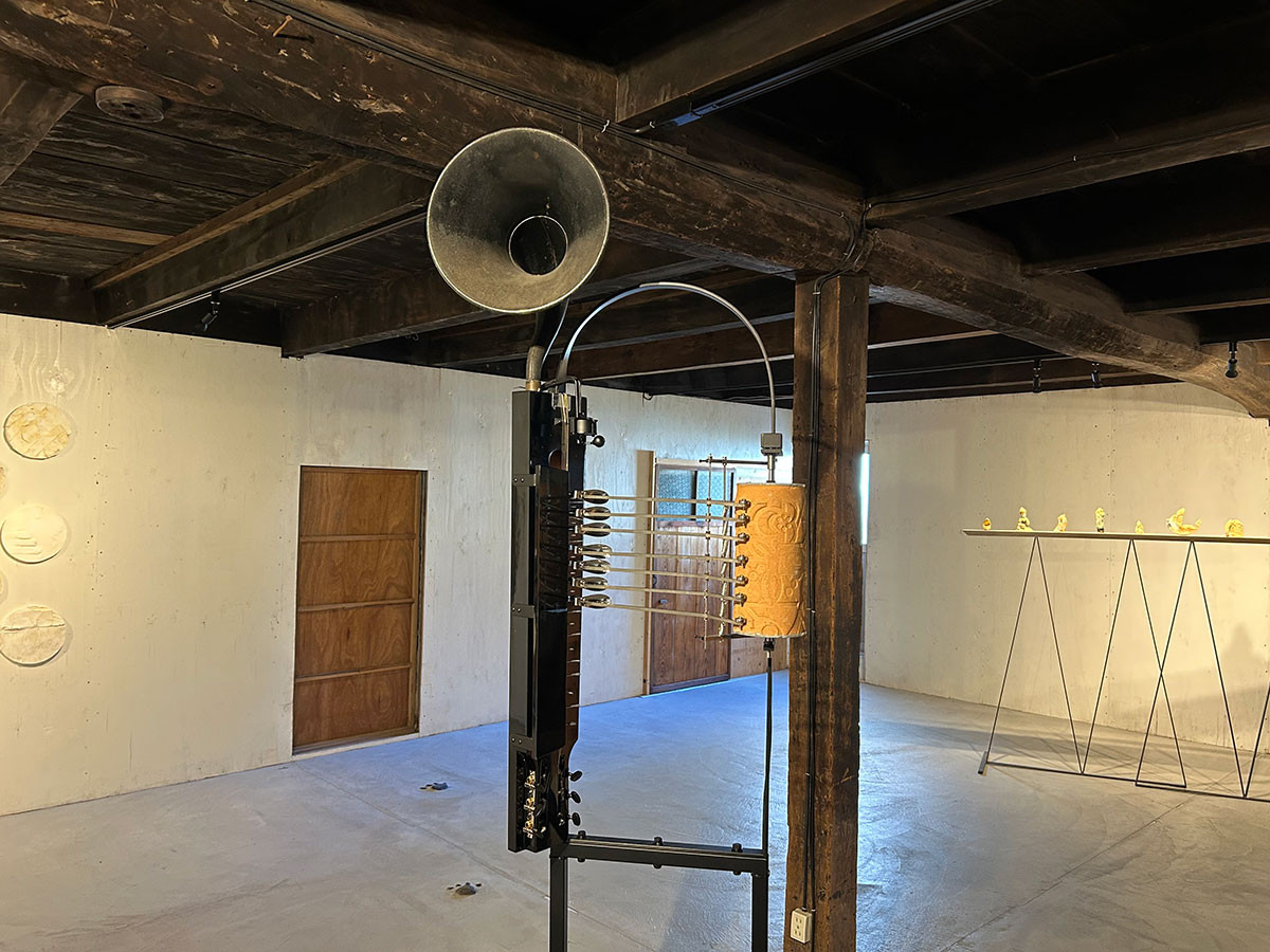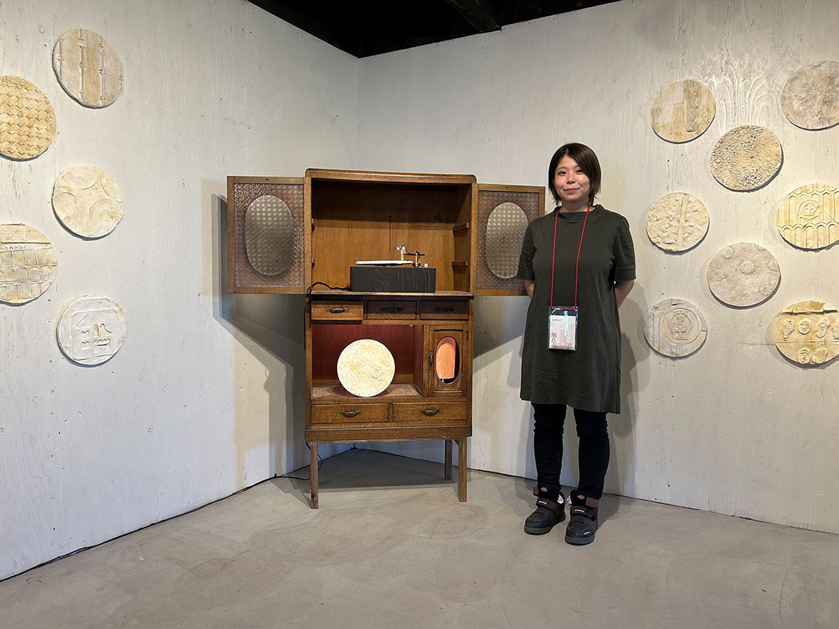 藤田クレアの《聴こえる風景 ~Tones of the City~》は、3点組の大きな立体作品です。作品タイトルにあるように、見て楽しむだけでなく、聴いて楽しむ作品です。この作品は、音源に瀬戸の風景を使用します。また、プレーヤーもアンティーク調で、どのような音が出るのか、予想がつきません。