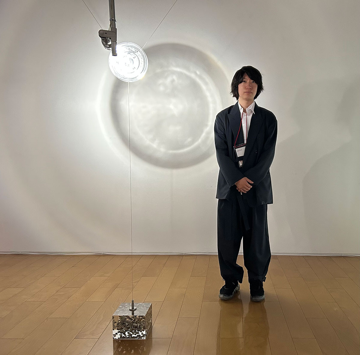 後藤は、現在、上海を活動拠点にしています。上海の生活の中では、目を凝らすと習慣や言葉の多様な差異の共存関係に気づかされるそうです。本作の顔のない人形は自分と他人の区別のあいまいさを表現し、鏡に映る観客は作品と作品以外の区別のあいまいさを表現しているようです。それは、現実と虚構が同時に存在する、とてもファンタジーな世界と、現実と虚構の微妙なバランスを垣間見せてくれます。