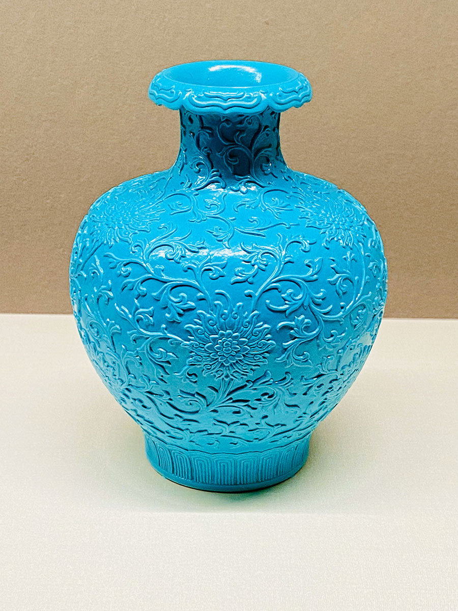 《松石緑釉剔刻蕃蓮唐草文瓶》清時代・乾隆(1736-1795)/景徳鎮窯 上海博物館