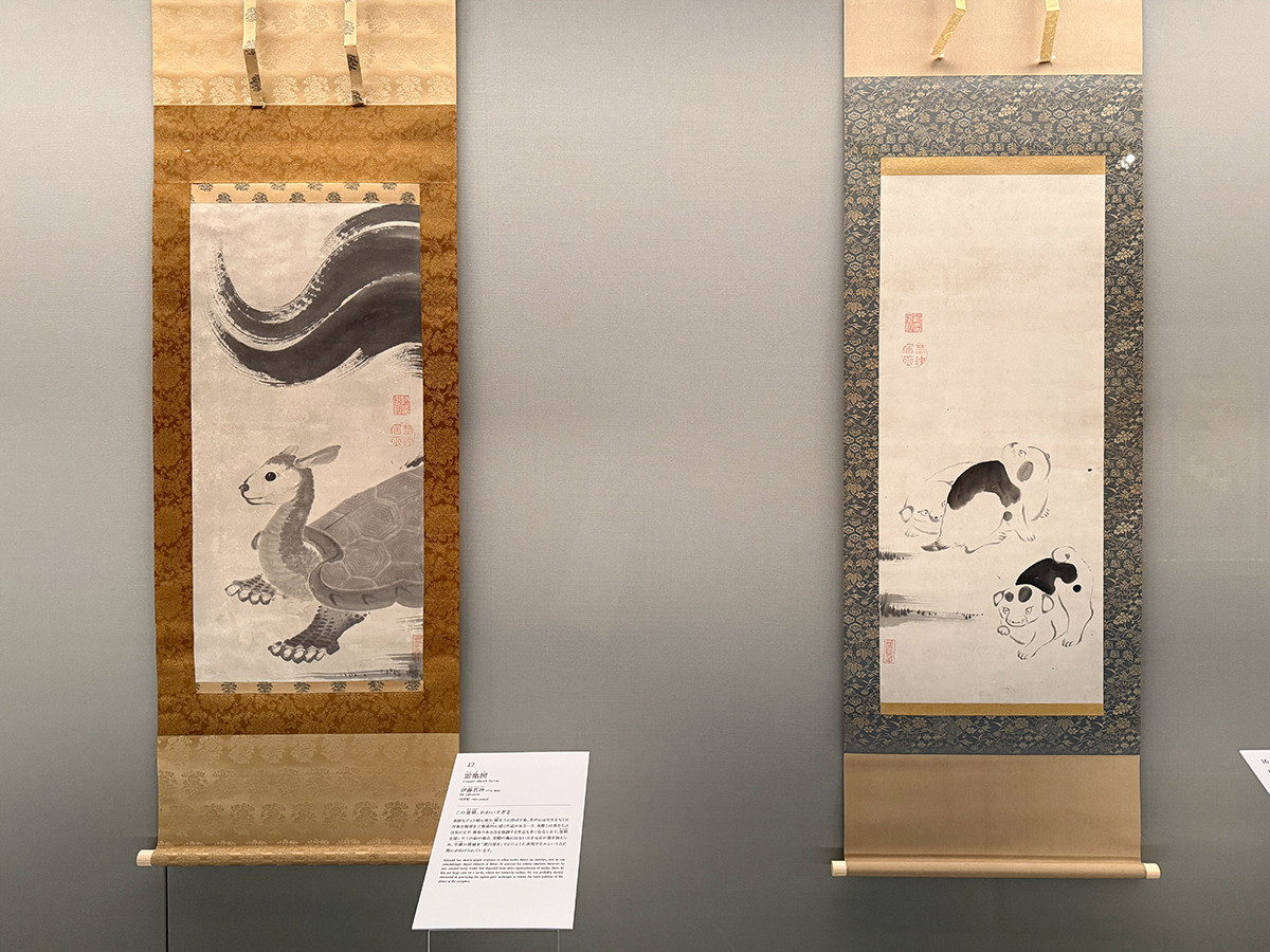 (左から)伊藤若冲 画、無染浄善 賛《馬図》18世紀 / 伊藤若冲《菊図》18世紀