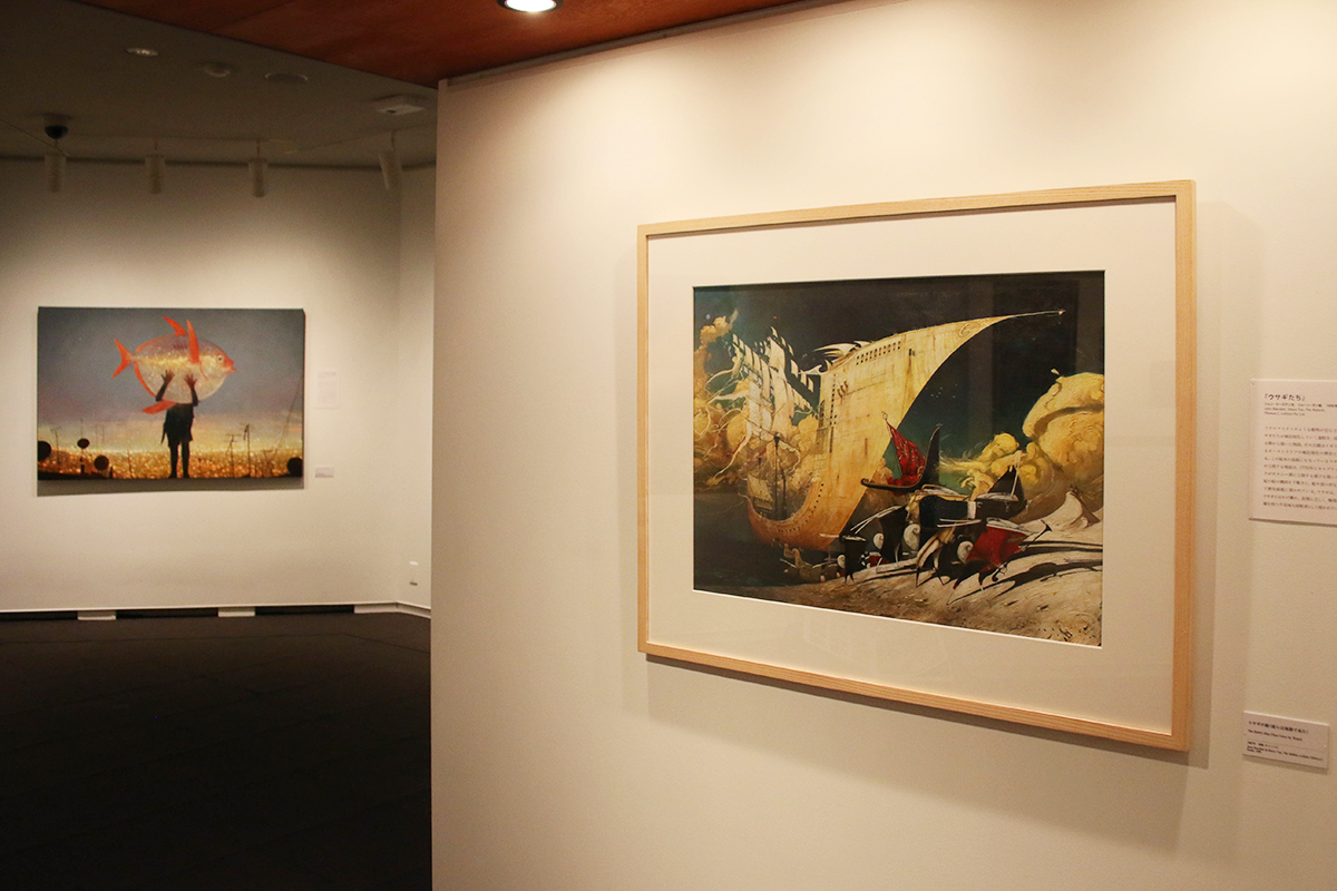 (手前)《ウサギの船(彼らは海路で来た)》1997年 / (奥)《ムーンフィッシュ(キンカガミ)》「内なる町から来た話」(邦訳仮題)より 2017年