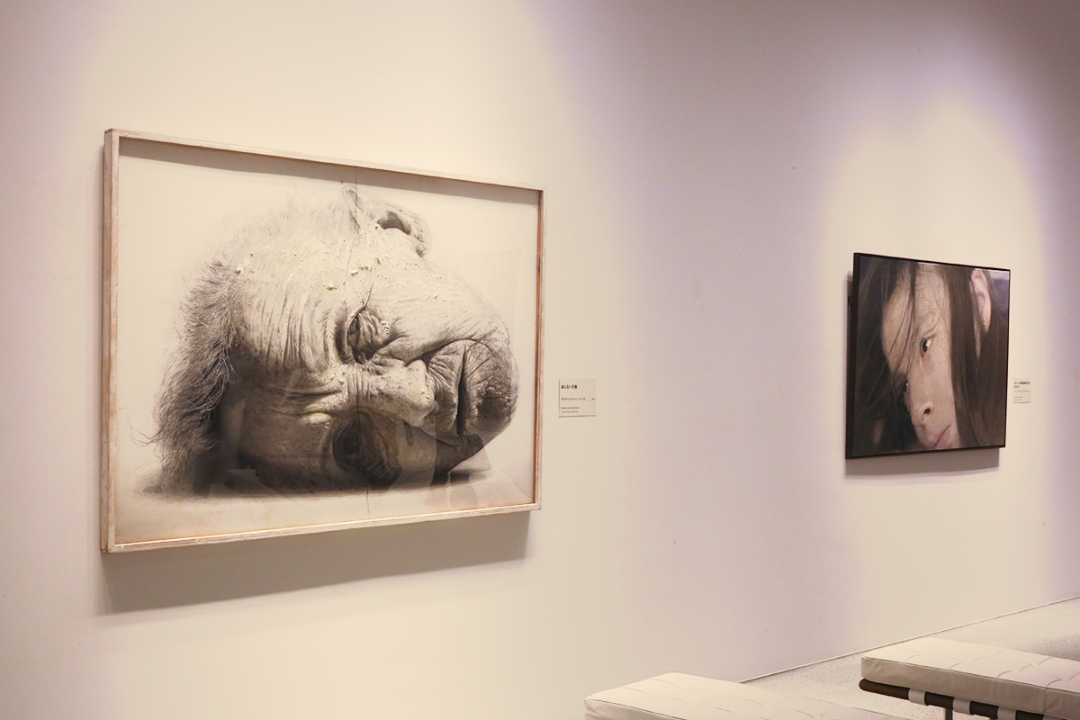 (左から)ゴルチョ(ミゲル・アンヘル・マヨ)《眠らない肖像》2007年 / ヘスス・マリア・サエス・デ・ヴィクニャ《MOAB(大規模爆風爆弾兵器)を待ちながら》2017年