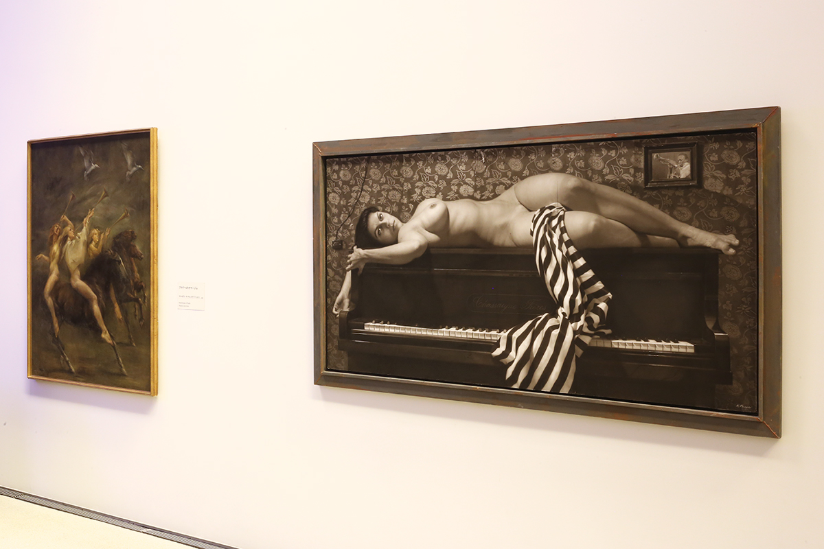 (左から)マルガリータ・クエスタ・パミエス《プラドへのオマージュ》1987年 / キケ・メアナ《マリナとマイルス》2017年