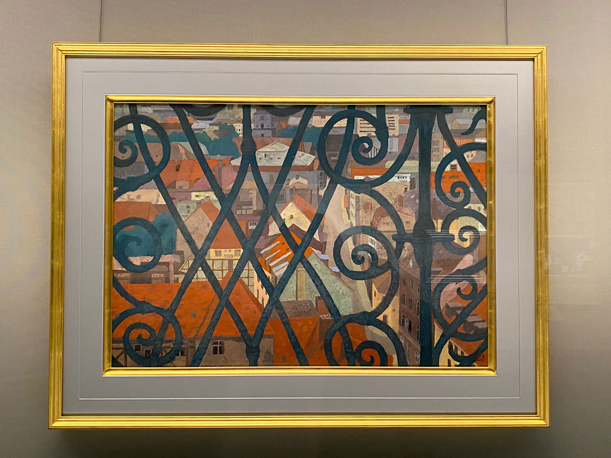 装飾的なデザインの鉄柵越しから眺めた街並み。珍しい色味に楽しい旅に弾む気持ちが表れているかのようで惹きつけられた作品です。