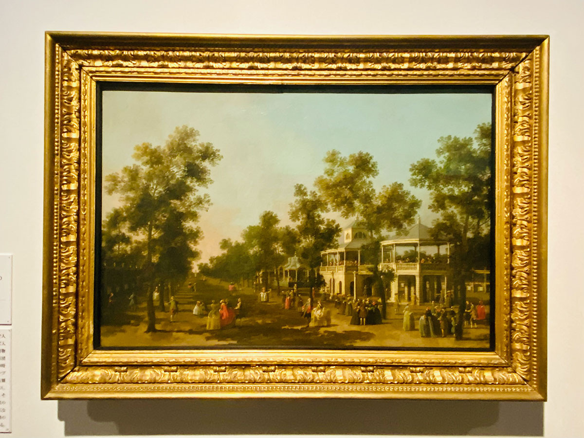 ここは18世紀のロンドンで人気のあった遊園地。そぞろ歩く皆々が優雅な優雅な衣装に身を包んでいますが、それは画家の忖度。カナレットの匙加減がいい味をだしています。