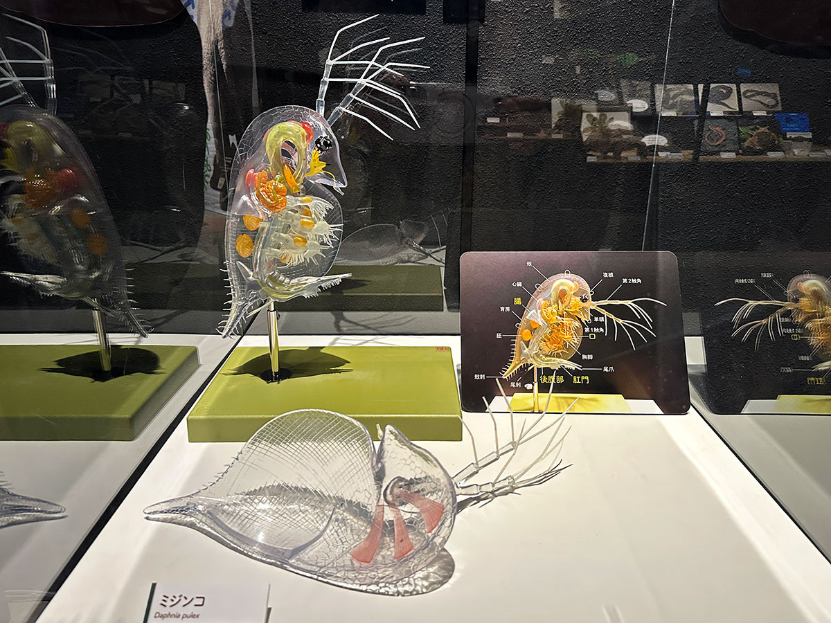 哺乳類や鳥類、爬虫類、両生類は、それぞれの食べものに合った消化の仕組みがあります。たとえば、哺乳類の中でも雑食動物は肉食動物より長い腸をもっています。会場の最初では、それぞれの消化管を比較することができます。
