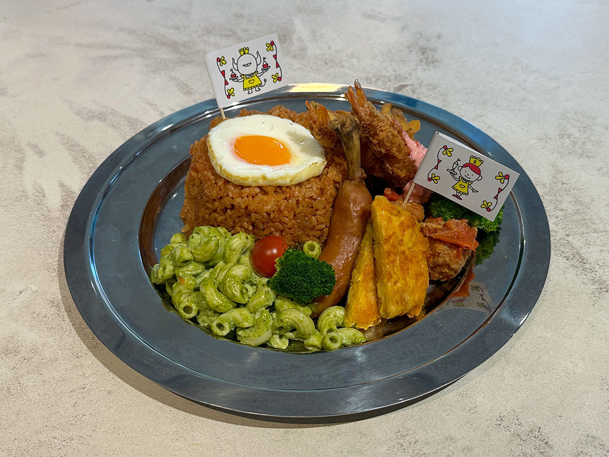 鑑賞後は隣接のカフェ『ヨシタケ飲食店かもしれない』へ。パスタやパフェなどのフードと共におすすめかもしれないのは「蛇口ドリンクバー」です。3種類の蛇口から出てくる紅茶やジュースを混ぜて味わうこともできます。