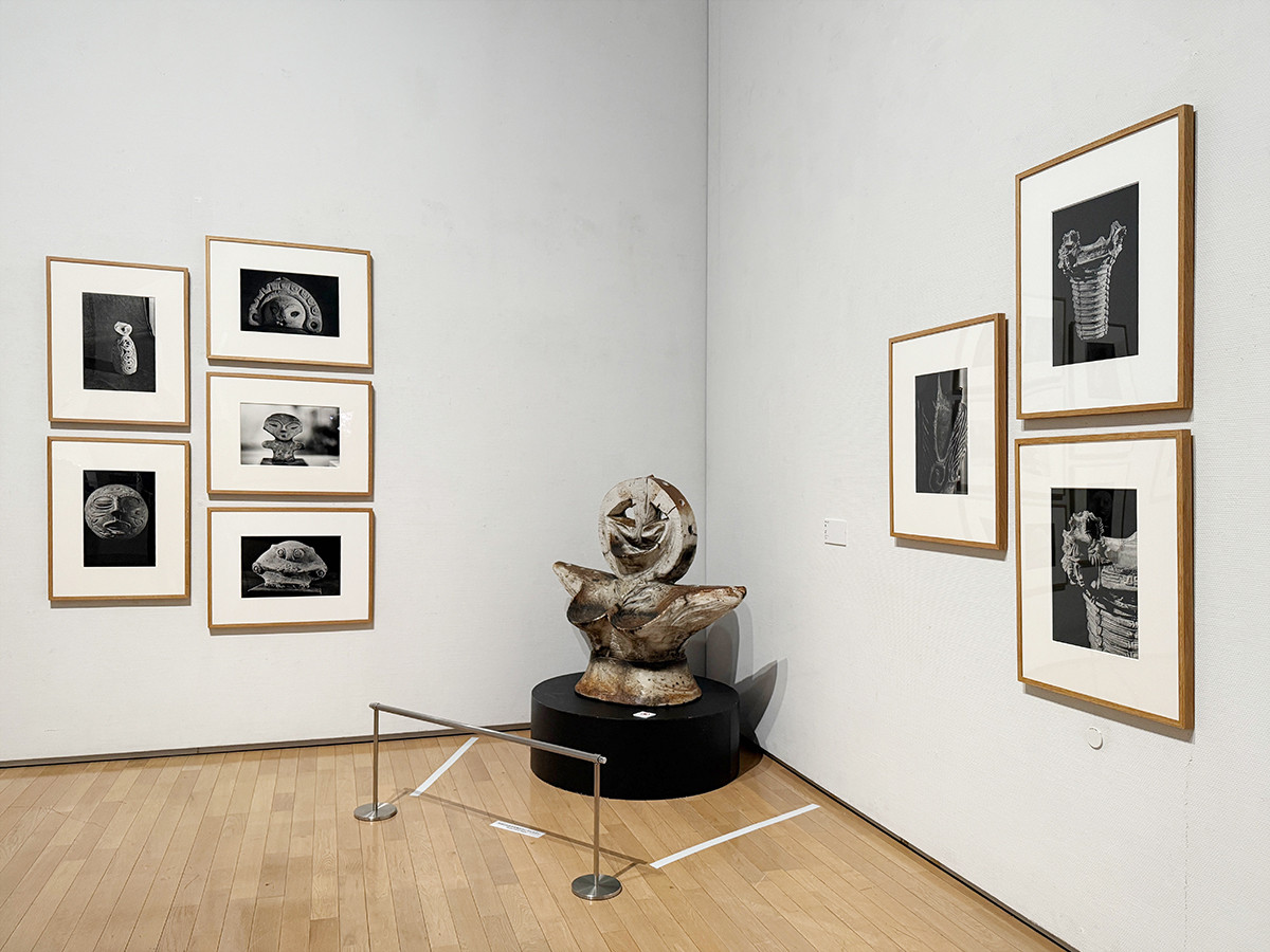 展覧会の核心とも言えるのが、第4章「『太陽の塔』と地下展示」。大阪万博において、「太陽の塔」は地下・地上・空中の三層で構成されたテーマ展示の中心でした。地下には民族資料や仮面、神像などが配置され、人間の根源的な営みが表現されました。