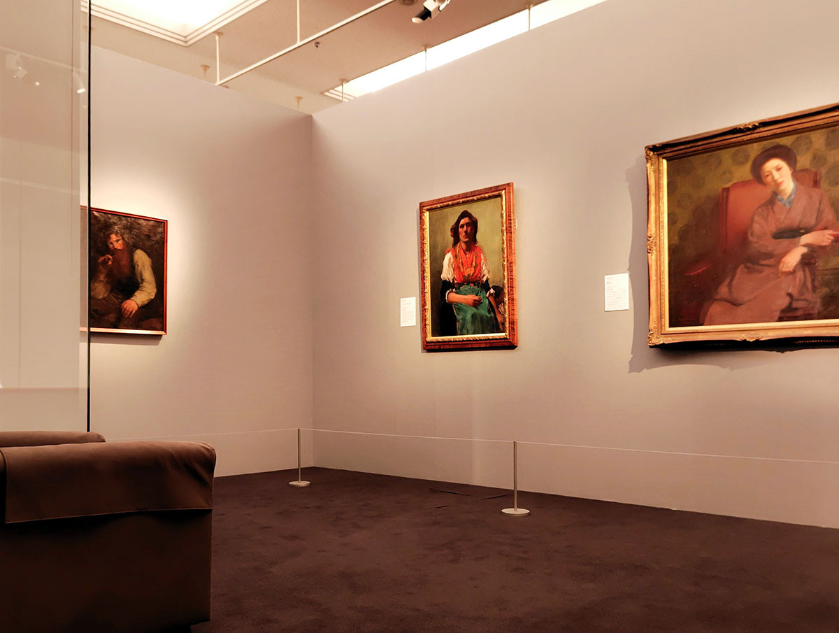 《白衣の婦人》には、布の質感に宿る静けさが、技術への執念を語る。《自画像》には、まるで赤い背景が彼の覚悟を象徴するかのように、画家としての誇りと責任が刻まれている。