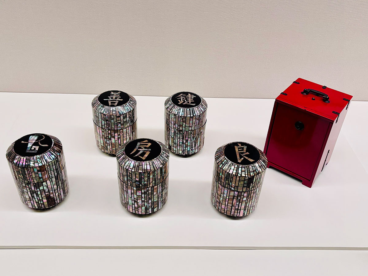 京菓子の「鍵善良房」では、棚や岡持ち、最近まで使用されていた葛切り用の螺鈿の器などを黒田辰秋が制作しました。