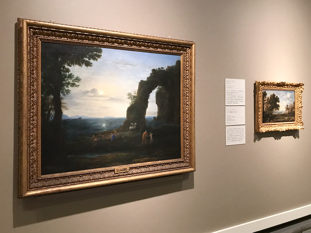 (左から)クロード・ロラン(本名 クロード・ジュレ)《ペルセウスと珊瑚の起源》1673年 ホウカム・ホーム / ピエール・パテル《エジプト逃避途上の休息》1658年 トゥール美術館、ルーヴル美術館より寄託