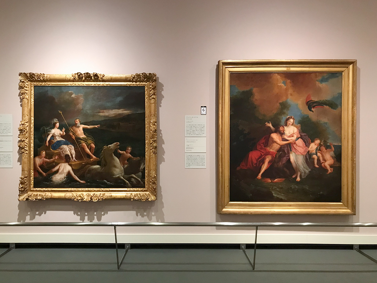 (左から)ボン・ブーローニュ《アンフィトリテを海の凱旋車にのせるネプトゥヌス》1706年もしくは1707年か トゥール美術館 / アントワーヌ・コワペル《イダ山のユピテルとユノ》1699年以前 レンヌ美術館