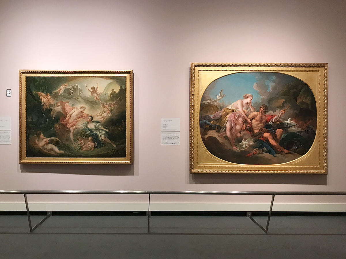 (左から)フランソワ・ブーシェ《羊飼いのイセに神の姿をみせるアポロン》1750年 トゥール美術館 / フランソワ・ブーシェ《ウェヌスとウルカヌス》1764年頃 ヴェルサイユ宮殿美術館