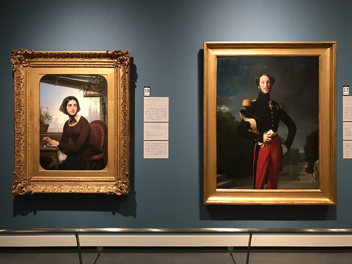 (左から)ジョゼフ=デジレ・クーレ《ジェルマンがいないあいだ気を紛らわすリゴレット》1844年 ルーアン美術館 / ジャン=オーギュスト=ドミニク・アングル《オルレアン公フェルディナン=フィリップ、風景の前で》1843年 ヴェルサイユ宮殿美術館
