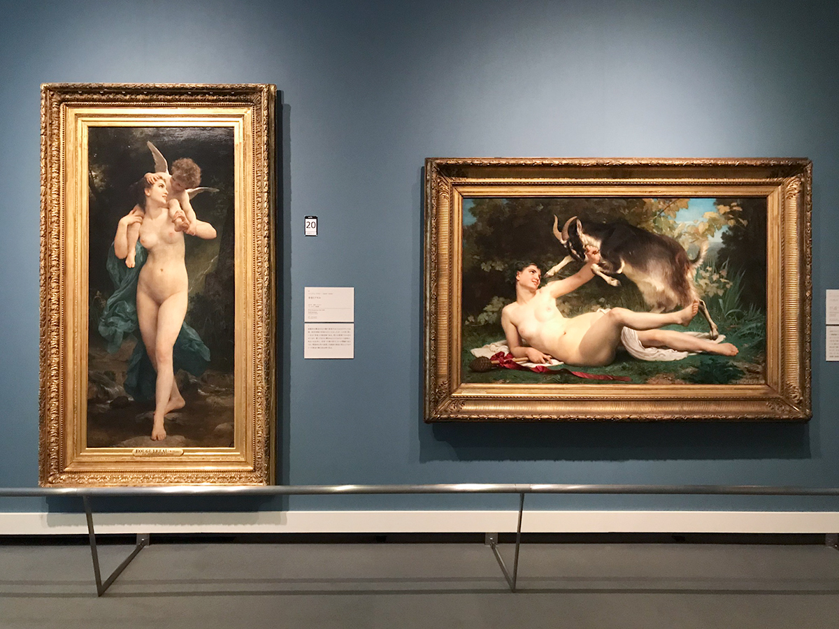(左から)ウィリアム・ブグロー《青春とアモル》1877年 オルセー美術館 / ウィリアム・ブグロー《バッカント》1862年 ボルドー美術館