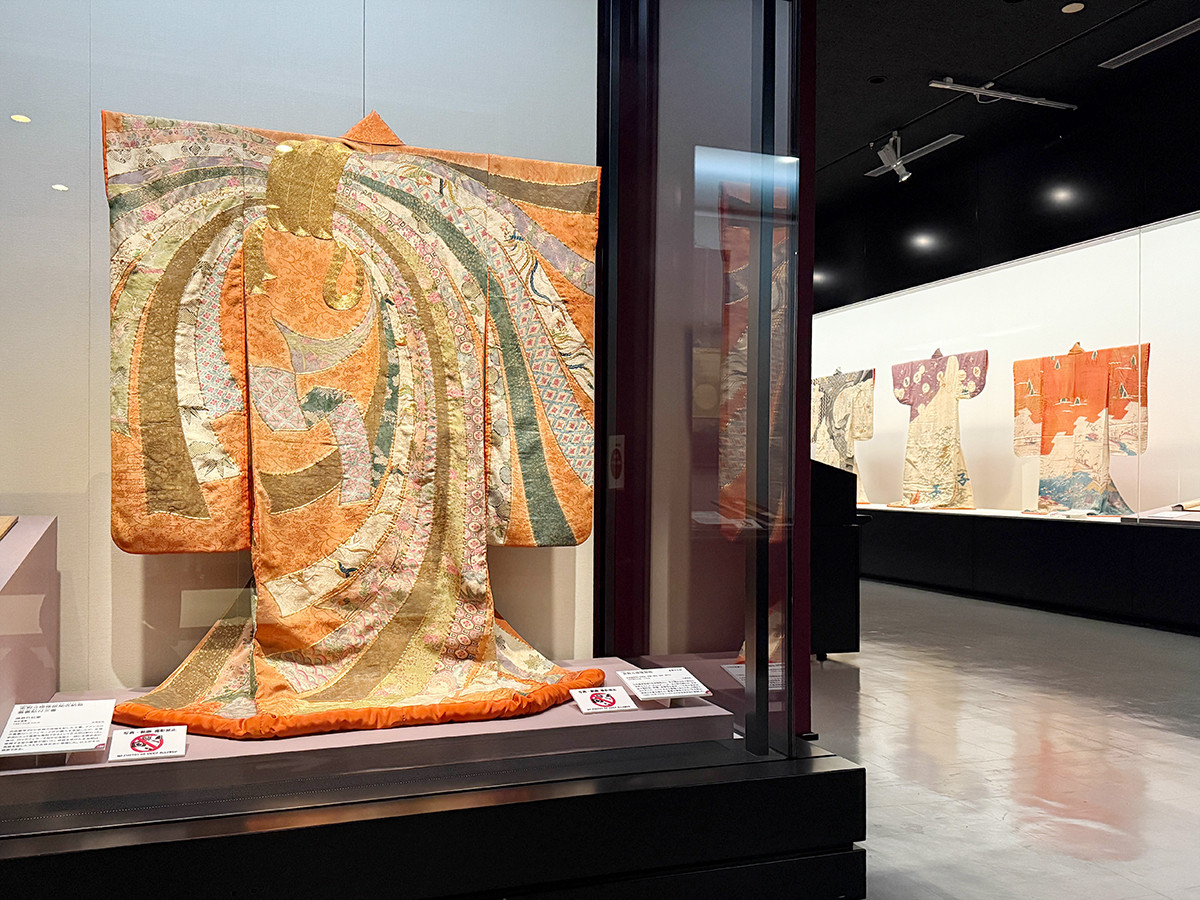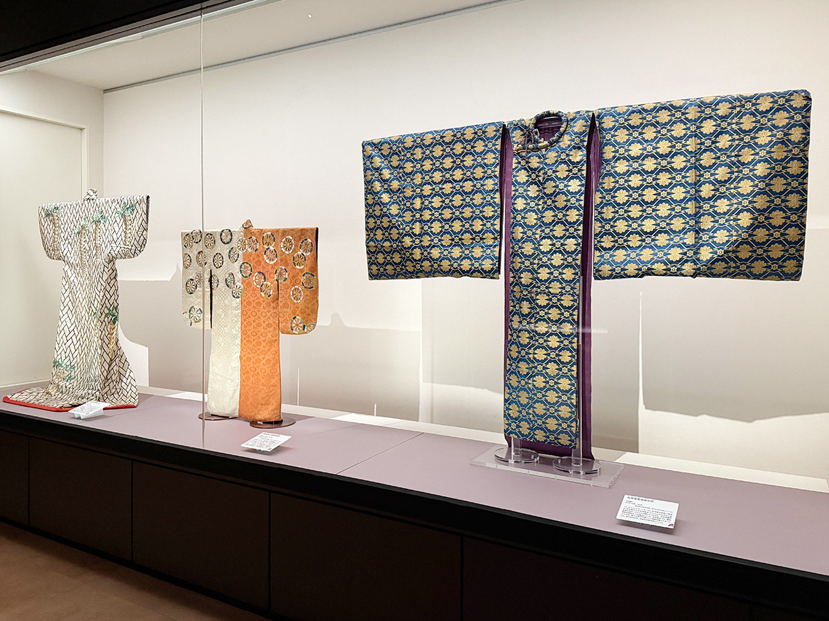 展覧会の第2章は「コレクターとしての活動―国内交流」、華やかな着物が数多く展示されているのはこちらの章です。美術商であった正治郎が1910年代の半ば頃からコレクターとしての性格を強め、国内で着物の重要性を啓発していく様子をたどります。