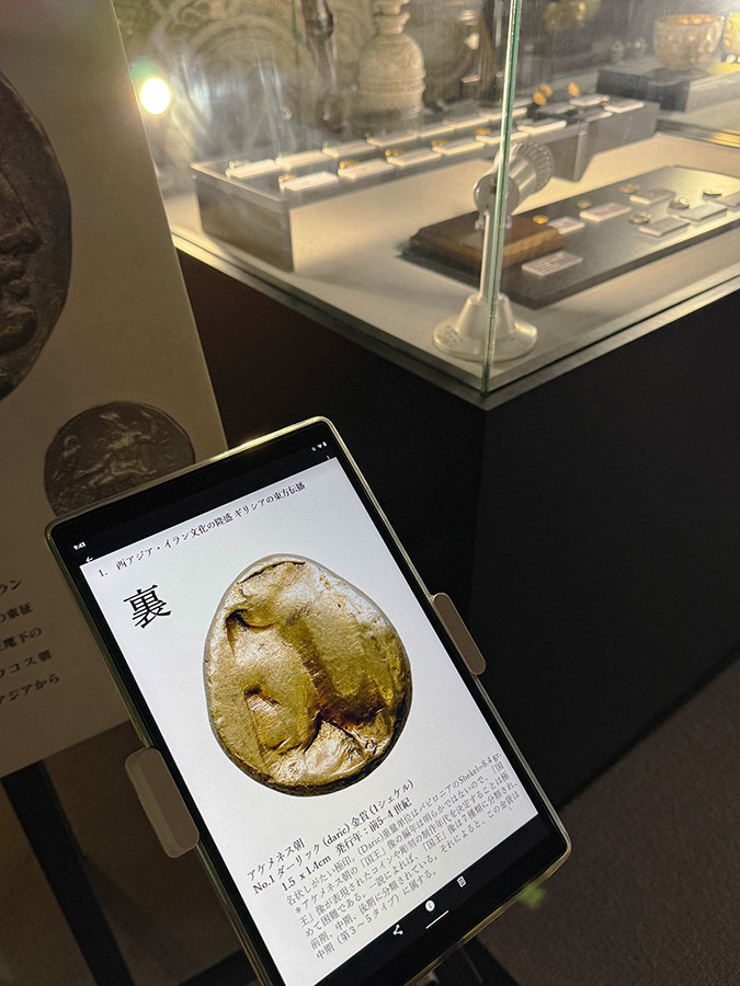 まるでミニアチュール(細密画)のような世界が広がる、小さなコインの世界。会場では虫眼鏡が用意され、細部までじっくり鑑賞できるほか、館内のタブレットでコインの裏面デザインや解説を確認することもできます。