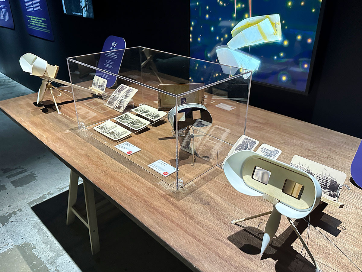 アトリエを再現した空間では、重力や張力といった目に見えない自然の力を観察したガウディの思考に迫ります。1893年に作られたパーフェクトスコープ眼鏡は、建築デザインを3次元で視覚化するために使用したものです。ステレオ写真を用いて、奥行きと空間効果をシミュレーションすることで現地での見え方を把握していました。
