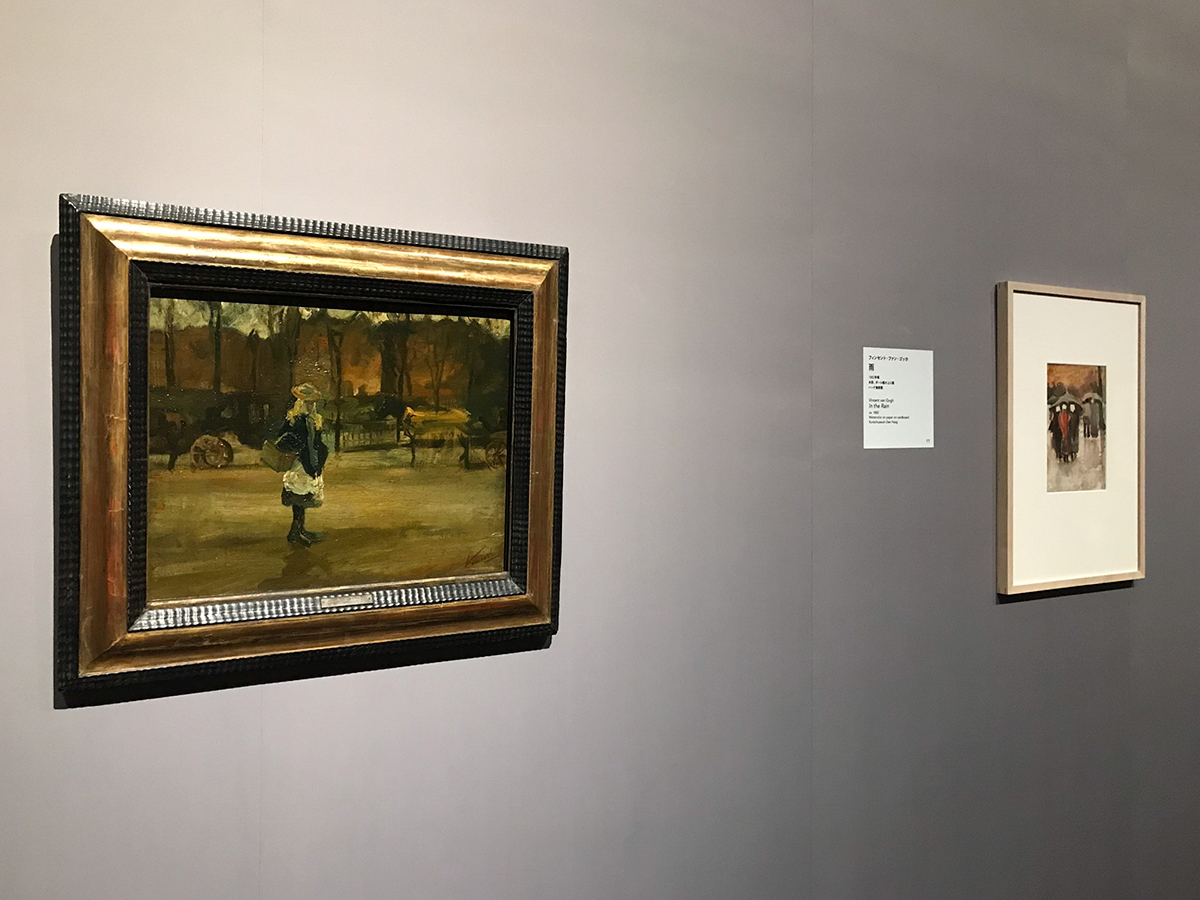 (左から)フィンセント・ファン・ゴッホ《馬車乗り場、ハーグ》1881-83年 ベルン美術館 / フィンセント・ファン・ゴッホ《雨》1882年頃 ハーグ美術館