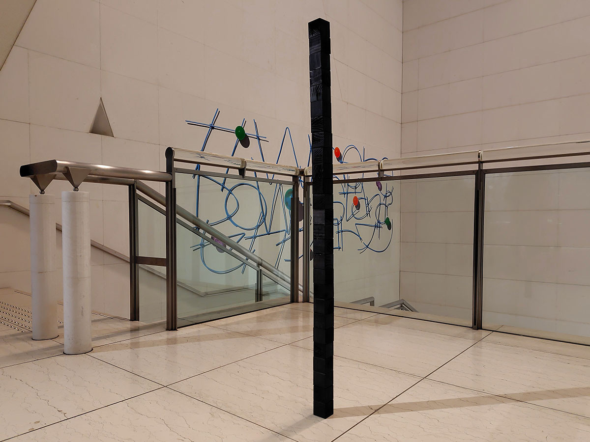 メインの展示は三階。美しい階段を上がった先に現れたのは、まさかの積み木でした。 「え、これ、作品ですよね?」と思わず足が止まります。 崩れることを前提に積まれた木のキューブたちが、時間の不確かさや、かたちあるものの儚さを語っているように感じました。