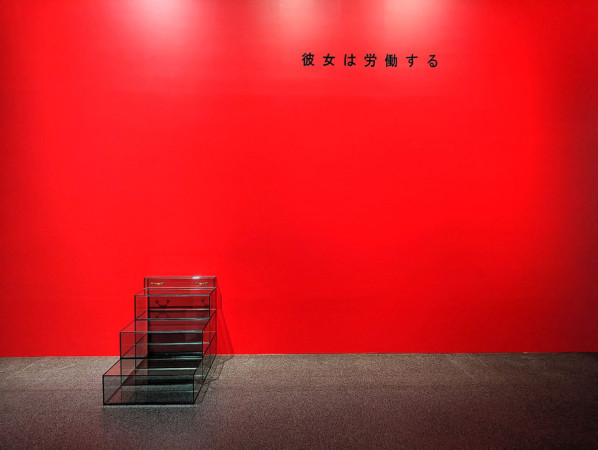 これは、夢に向かって上がるための階段でしょうか。 でも、三段しかありません。 絶望的な赤い壁には「彼女は労働する」の文字。