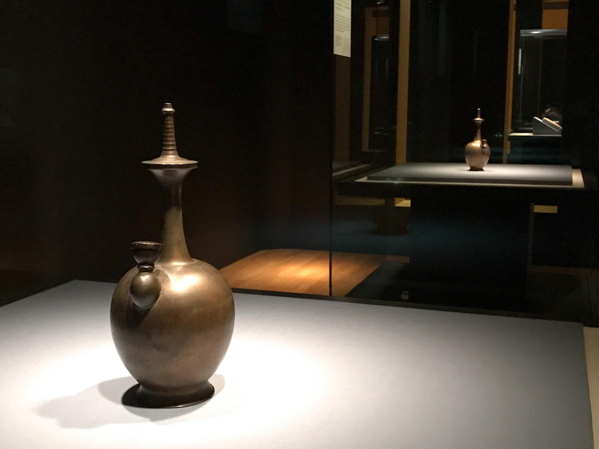 (左手前)重要文化財《浄瓶》 飛鳥~奈良時代・7~8世紀 東京国立博物館(法隆寺献納宝物)[前期展示:10/14~11/4]