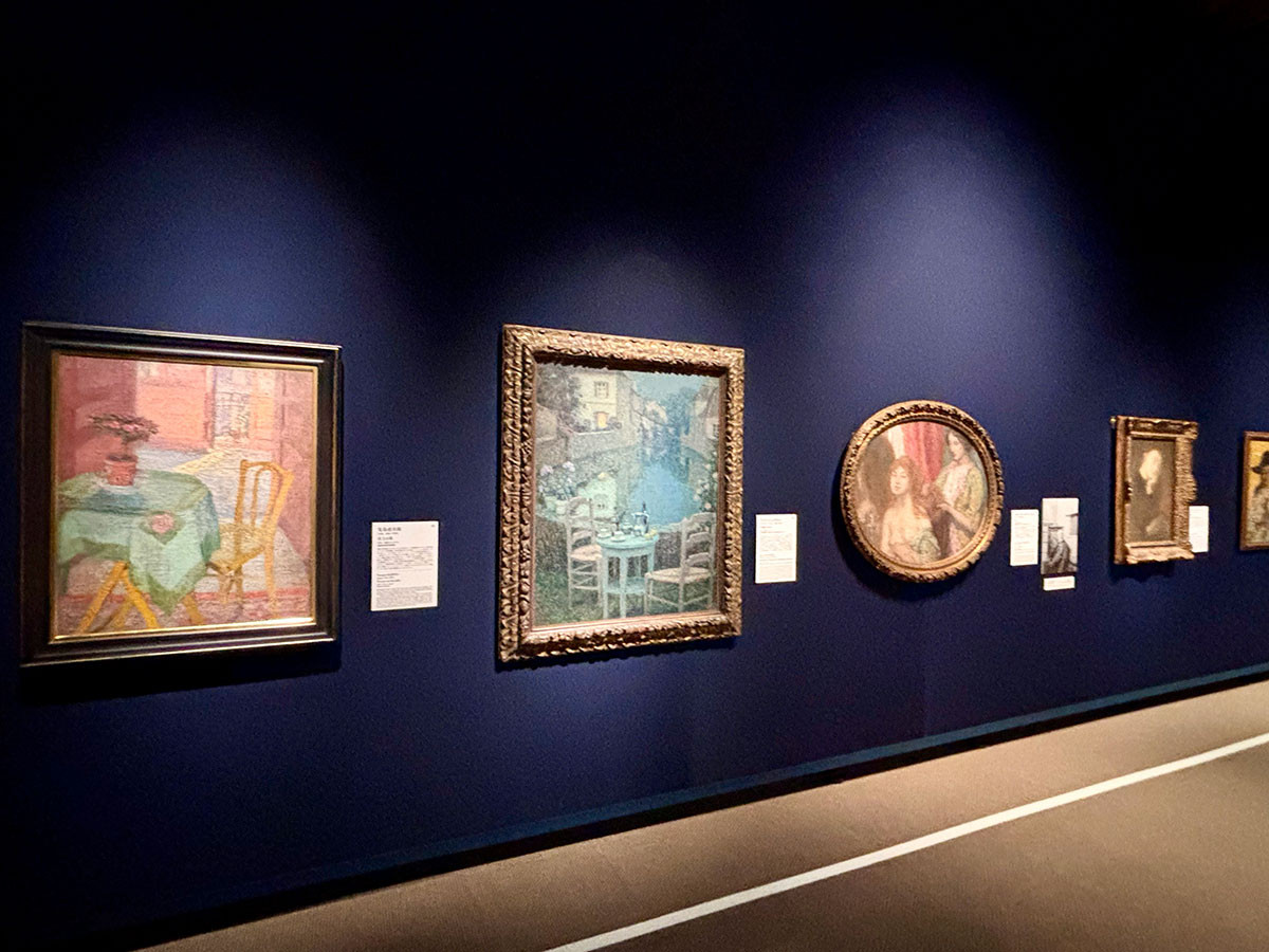 右手前:児島虎次郎《和服を着たベルギーの少女》1911年、右奥:ジョルジュ・デヴァリエール《ミュージック・ホール》1903年、左手前:エミール・クラウス《冬の果樹園》1911年 全て大原美術館
