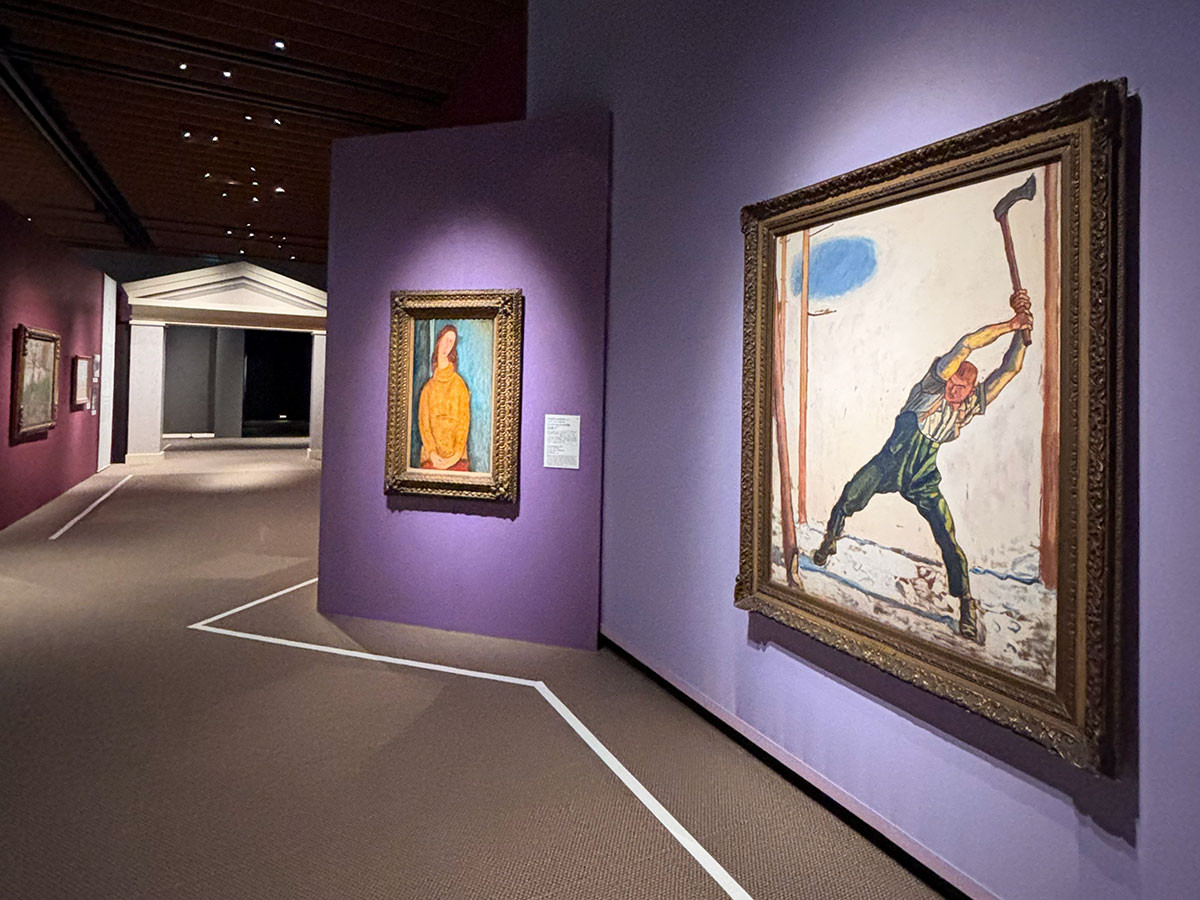 右:フェルディナン・ホドラー《木を伐る人》1910年、左:アメデオ・モディリアーニ《ジャンヌ・エビュテルヌの肖像》1919年 大原美術館