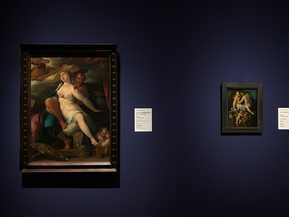 (左から)バルトロメウス・スプランゲル《メルクリウスの警告を受けるヴィーナスとマルス》1586/87年頃 / ヨーゼフ・ハインツ(父)《ユピテルとカリスト》1603年のやや後 ともにウィーン美術史美術館、絵画館