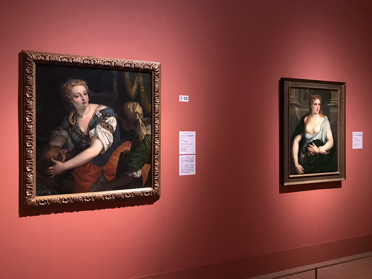 (左から)ヴェロネーゼ《ホロフェルネスの首を持つユディト》1580年頃 / パリス・ボルドーネ《緑のマントをまとう女性の肖像》1550年頃 ともにウィーン美術史美術館