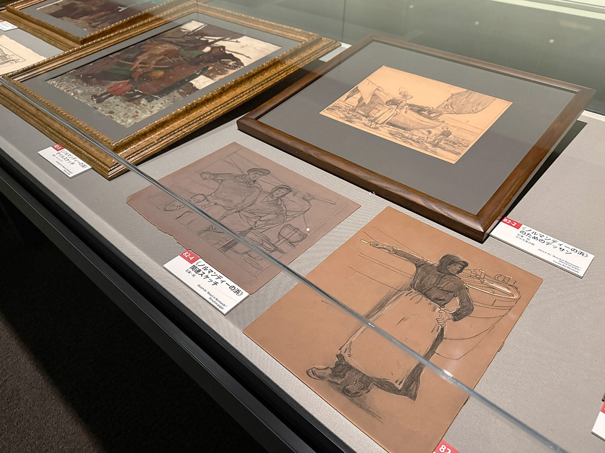 その成果として描かれた《ノルマンディーの浜》は、漁夫一家の日常を重厚な写実で描いた大作です。西洋的構成に本格的に挑んだ作品として高く評価されました。