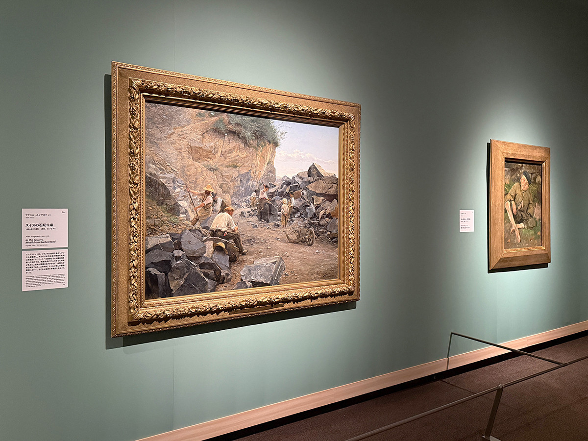 (左から)アーンシュト・ヨーセフソン《少年と手押し車》1880年 / アーンシュト・ヨーセフソン《スペインの鍛冶屋》1881年 ともにスウェーデン国立美術館蔵 「東京都美術館開館100周年記念 スウェーデン絵画 北欧の光、日常のかがやき」展示風景、東京都美術館、2026年