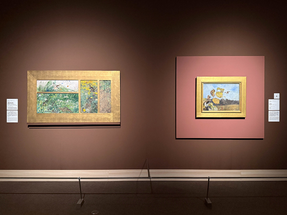 (左から)カール・ノードシュトゥルム《画家の婚約者》1885年(年記) / カール・ノードシュトゥルム《グレ=シュル=ロワン》1885-1886年(年記) ともにスウェーデン国立美術館蔵 「東京都美術館開館100周年記念 スウェーデン絵画 北欧の光、日常のかがやき」展示風景、東京都美術館、2026年