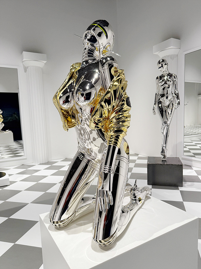 人体の曲線と金属の質感を同時に成立させる表現は、空山の代名詞といえます。その造形は、アートと商業、現実と虚構の境界を横断しながら発展してきました。
