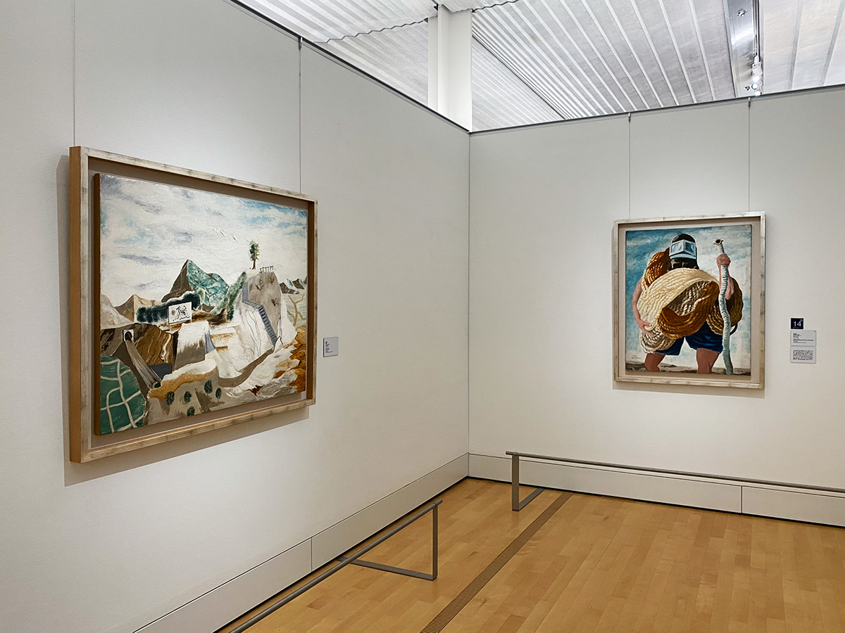 (左から)吉原治郎《風景》1933-34年 大阪中之島美術館 / 吉原治郎《縄をまとう男》1931-33年 大阪中之島美術館
