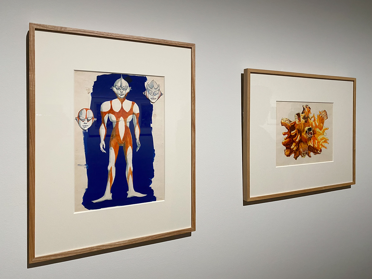 (左から)成田亨《ウルトラマン初稿》1966年 青森県立美術館 ©Narita/TPC [展示期間:~2月5日] / 成田亨《ブルトン》1966年 青森県立美術館 ©Narita/TPC [展示期間:~2月5日]
